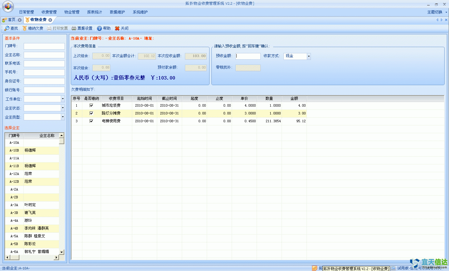 可以批量導出業主信息一覽表;