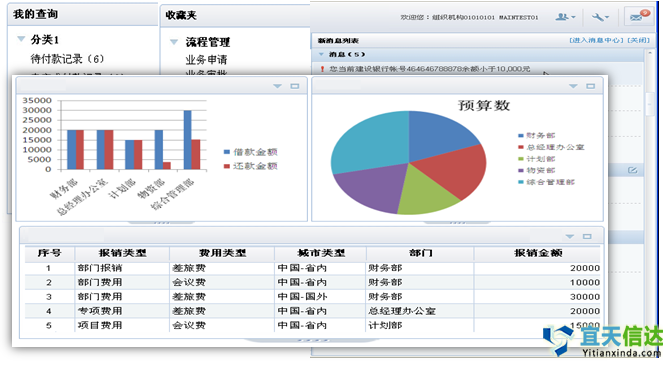 l消息中心:系統消息(預警消息、流程訂閱、待辦訂閱等)、站內通訊、公司公告進行分類展示;