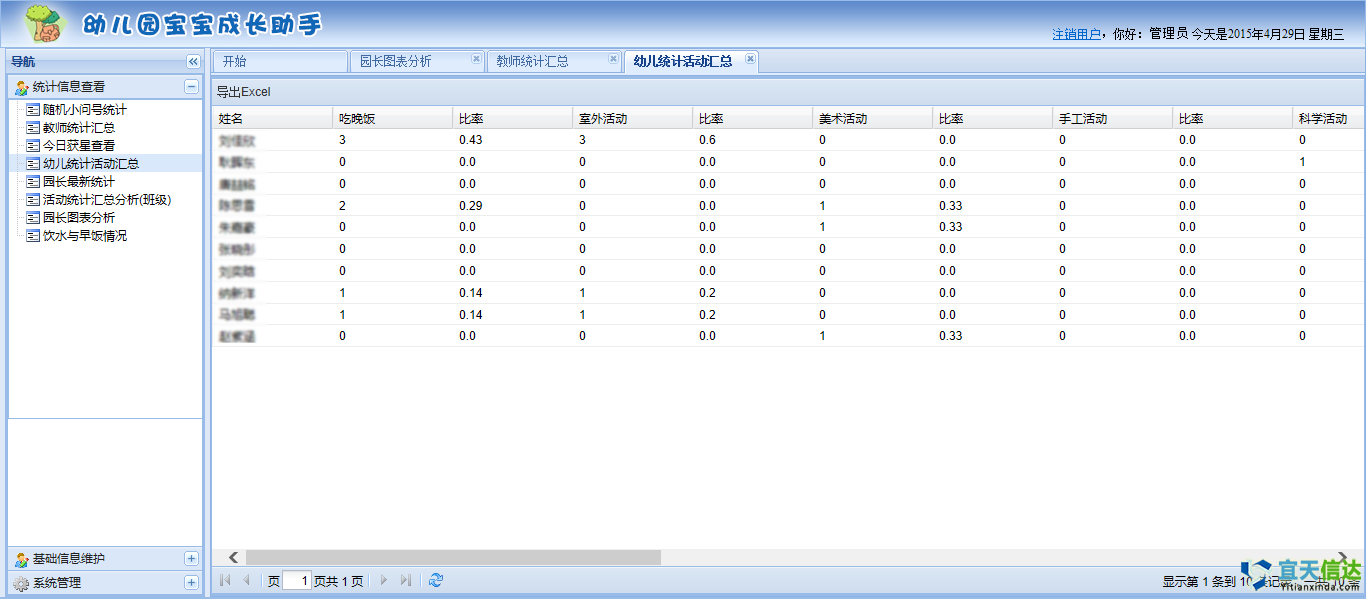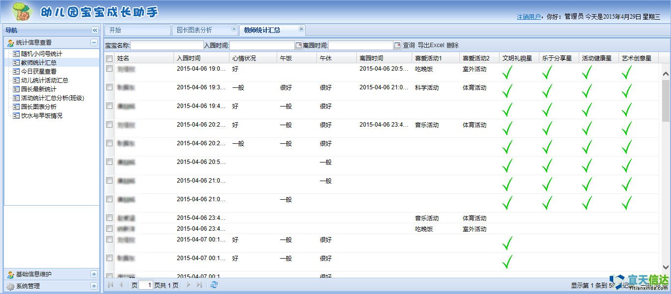 成果摘要:記錄孩子每天活動的情況和孩子的興趣愛好趨向。完善其他產品只能提供今天的課程表或開展的活動,真正做到關注孩子今天喜歡什么活動,關注孩子個性發展;